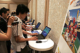 質疑応答のあとは,NHN Japan取締役副社長である森川亮氏の挨拶,そしてフォトセッションを経て,14時40分ころに閉会。会場には試遊台が設置されており,来客用にタッチ&トライの時間が設けられたのだが,この時間を利用して我々は塩澤氏にあれこれ質問をぶつけてみた。