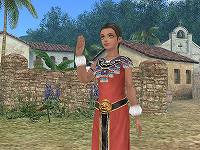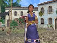 新衣装(1):巫女のファルダ 新大陸の宗教において、重要な役割を果たしていたのが巫女でした。彼女たちは、民族の信仰する神と人々とを結びつける役割を担っており、非常に高貴な存在として扱われていました。この服はそうした新大陸の巫女たちの衣装をイメージしたものです。なお、ファルダとは、スペイン語で言うところのスカートの一種で、踊るときに美しく見えるよう、フリルや裾、裏地などにも装飾が施されているものを指します。