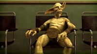 このムービーは,デモ版にも登場したデミ・ヒューマノイド系のクリーチャーを魔法で吊り上げ,壁に立てかけてある杭から突き出たトゲに刺すという内容。その前後にイメージシーンが追加されており,全体としてコミカルタッチのムービーに仕上がっている。