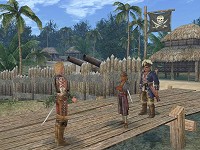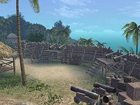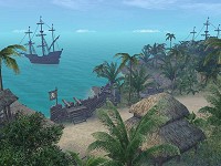 カリブ海域のどこかに存在する「海賊達の楽園」、それが“海賊島”です。この島の街には、悪名の高い海賊しか立ち入りが許されておらず、一般の航海者が街に入るには莫大な賄賂が必要となります。また、他のプレイヤーに討伐されて海賊活動を禁じられた海賊は、この島で一杯ひっかけることで活動を再開することができます。そのため、島は海賊たちの拠点として、大いに繁栄することでしょう。