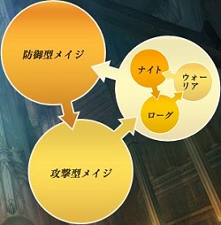 攻撃型メイジはMelee系クラスに強い Melee系クラスは防御型メイジに強い 防御型メイジは攻撃型メイジに強い