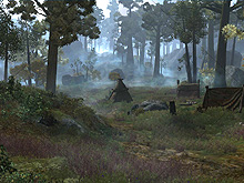 このように,ConanはPvPもしくはPvEを主体とするゲームになる。とはいえ,次に見せてくれたのが,“街造り”だ。ある条件を満たすとギルドを作ることができ,自分達の街を造れるようになる。NPCが仕事をすると,地表からもりもり建物が立ち上がってくるのだ。最初は木造のバラックだが,時間が経ち,プレイヤーのレベルが上がればそれらがやがて立派な街になっていくとのこと。 時を同じくして,峠の向こうでも街造りが始まっている。この場合,作っているのはコンピュータだ。やがて「兵舎」が建てられ,そこから兵士が次々に出てくる。年恰好や服装などまちまちだが,兵士達は城門の外に走り出て,旗を持った指揮官の周りに集合する。なんと,奴らはこちらの街を攻撃するつもりなのだ。兵士が十分集まったと思った指揮官は,かざしていた旗をまっすぐに立ち上げ,なんちゅうか,山賊めいた集団を率いて峠を越え,わが街を目指して一目散に走ってくる。 そこでプレイヤーは城門の外に設置された“カタパルト”に近づき,でっかいオモリをぶら下げた縄をキリキリと巻き上げる。そして,敵の一団が姿を見せたところで爆薬を投擲。弧を描いて飛んでいった爆弾は見事(本当は一回失敗している)に敵集団の真ん中で大爆発し,兵士達を一網打尽にしてしまう……,と,書いているほうも自分がMMORPGのことを書いているのかRTSのことを書いているのか分からなくなるようなフィーチャーが,このConanには用意されているのだ。 どういう条件を満たせば街が造れるのか,あるいは,どんな土地に建物を建てられるのかについては,未決定の部分が多くあるとのことだが,こうした既存のMMORPGの概念にとらわれない面白い仕掛けが各所に仕込んである点が本作の最大の特徴である。 ハンドリングがうまくいけば,ConanはほかのMMORPGとは一味も二味も異なるゲームになるはずだ。正式サービスは2007年5月が予定されている。一度発売時期が延期されているので,ぜひこの日程はクリアしてほしいところ。また,欧米とオセアニアなどのパブリッシャはEidos Interactiveに決まったが,アジア地区はまったく未定。日本でのサービスも検討してもらいたいところである。(松本隆一)