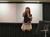 投票の集計が行われている間,会場にはゲストの“にゅーあきば公式レイヤー”の3人が登場し,歌を披露。さきほどまでの厳粛かつピリピリした雰囲気はどこへやら,一気に電波系な空気漂う“いつものアキバ”なイベントへとギアをシフトさせていった。さらにそのままアキバ系イベントなノリは加速し,抽選/ジャンケン大会へ突入。豪華な賞品(小松里歌さんの直筆サイン,WebMoney 2万円分,「とぅいんくる」公式PCなど)が発表されるたびに「うぉ〜!」という雄叫びのようなものが観客の間から巻き起こっていた。