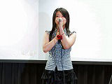 司会者による候補生の紹介が終わったあとは,同作品でヒロインのモモカ役を演じている声優の神田朱未さんからのビデオメッセージが上映された。神田さんは「『とぅいんくる』は登場キャラが元お嬢様という設定なので,収録のときはお嬢様気分で楽しく演じさせてもらいました。これからも,今日決まるとぅいんくるガールズの人達と一緒にゲームを盛り上げていきたいと思ってます。候補生の皆さん,オーディション頑張ってください」とコメントしていた。