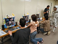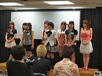 ●左:最終オーディションまで残った候補生8人。この中から3人が選出されるのだ ●右:会場には「とぅいんくる」が試遊できるPCも用意された。右奥の宇宙服の人は一体?
