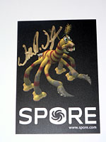 かくして,40分ほどのプレゼンテーションは終わり,最後にサイン会が行われた。もちろん,来場者のほとんどが行列を作り,順番が回ってくると,興奮して握手をし,写真を撮る。もちろん我々もほかの人々とまったく同じことをしちゃったのだが,そのようにして手に入れたのが左下の写真のカード。いずれは4Gamerの「今週のプレゼント」の一つにしようと考えているので,同氏のファンはチェックを怠りなく。 Sporeの開発にはまだ時間がかかりそうだが,2007年のGCで再びライト氏がSporeのプレゼンテーションを行うかもしれない,と考えると,それはそれでいいような,よくないような……。なんにせよ,気長に待っていよう。(松本隆一)