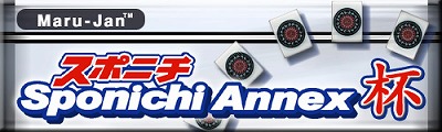 スポニチアネックス杯は,スポーツニッポンが運営するWebサイト「スポニチアネックス」とのタイアップイベント。通常の順位点のほか,10万点を超えるともらえる「スポニチホームラン賞」,「三」の付く役のうち三種類を和了るともらえる「スポニチハットトリック賞」など,いかにもスポーツ新聞らしいボーナスも用意されている。 もちろん優勝者や上位入賞者には,ポイントのほか「スポニチ厳選スポーツグッズ」「Maru-Janオリジナルグッズ」といった賞品が用意されている。