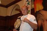 ヒョードル選手は,「オンラインゲームをプレイしたことはほとんどないが,CYKANのモデルになったのでこれからはゲームをやってみるつもり」と語った。また,本業の格闘技については,「怪我はそれほど深刻なものではなく,2回の手術を受けてほぼ回復した。10月21日のPRIDEラスベガス大会に向けて練習しており,素晴らしい試合をお見せする。マーク・コールマンとの試合が楽しみ」とアピールした。