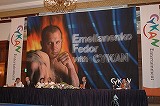 ヒョードル選手の訪韓がめったにない珍しいことであったことから,ゲーム関連メディアだけではなく格闘技関連のメディア関係者達も取材に訪れており, 会場は熱気に包まれていた。発表会は,ヒョードル選手がイメージモデルを受諾してくれたことに対する感謝の意を込めた感謝牌の贈呈式から始まった。