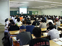 さて,講演内容もさることながら,「機神飛翔デモンベイン」がまさしくグラフィックスをはじめとする表現力により,スマッシュヒットをカマしたこのタイミングで,ニトロプラスの人を呼んできた着眼のよさには,それだけで感心すべきものがある。ではそれは,どのように実現したのか? 会場で聞いてみたところ,今回仕掛け人となったのは,CEDECの押しも押されぬキーパーソンである,IGDAの板垣貴幸氏。同じく会場で板垣氏に少しだけ時間をもらって話を聞いてみた。それによるとニトロプラスに関しては,氏の個人的な人脈で「最近元気のある会社がある」という紹介を受けて,話を繋げたものらしい。そして,CEDEC 2006でセッションを設けた意図は「ゲームグラフィックスについては3Dばかりが取り沙汰されるようになってしまったが,その一方で2Dのグラフィックス技術に関するセッションも必要と考えているので,ご協力をお願いした」という経緯なのだそうだ。 もっぱら「萌え」絵を題材にしたセッションであるが,それが今日のゲーム開発で必要な技術であることは論を待たないし,絵の種類を問わない作業効率やモチベーションの話も,講演には含まれていた。ざっと見たところ200人弱の受講者を集め,立ち見すら出ていたのは,話題性と実用性,両方を兼ね備えた講演内容の賜だろうと感じた。(Guevarista)