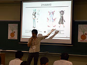 講演全体の雰囲気に合致した形で,質疑応答も極めて具体的なものだった。例えば「Photoshopを使った最大1600%までの拡大作業を,無駄な作業を生む落とし穴と評していたが,実際どの程度まで拡大して作業しているか?」という質問への回答は「300%が限度。それ以上細かくしても,作品になったときには分からない」というもの。同様に「実際にニトロプラスでグラフィッカーを選考するときに,どんな質問をするか?」という問いには,「グラフィッカーとして今後何をしていきたいかという,目標面を含めて聞く」との答え。そして,「グラフィッカーのキャリアパスをどう考えているか。全員が将来原画家やプロデューサーになれるとは思えないが?」という質問には,「そのとおりであって,グラフィックス以外の関心と能力を伸ばすことも考えていく必要がある。ただし,基本的に弱肉強食の世界であることには変わりない」と,これまた現場を知る者らしい,シビアかつ説得力に富んだ見解を示した。