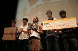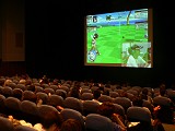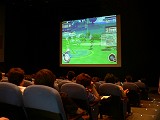 観戦用の会場では,実況解説入りのゲーム画面が映画館並みの500インチスクリーンで生中継されていて,家庭用ディスプレイでは味わえないような迫力ある試合中継を楽しめた。この実況解説入りの試合中継は,イベント開催期間中に「Yahoo!動画」でストリーミングライブ配信も行われていて,会場へ足を運ぶことができない人はインターネットを利用して大会の模様を見ることができるようになっていた。たくさんの人が注目するイベントだけに,こういったオンライン中継は観戦を楽しみにしている人にとっては嬉しい配慮だろう。筆者自身も,予選の初日にこのストリーミング放送を実際に体験してみたのだが,ストリーミング放送にありがちな,「混み合って接続できない」「途中で映像が停止する」「接続が切断される」といった不具合はほとんどなく,とても快適に観戦できた。ゲーム画面の明るさ調節が上手くできてなくて,見づらいと感じるときもあったが,無料で楽しめる放送としては満足のいくものだった。また,それぞれのゲームに詳しい実況者,解説者が中継を行っていた点も,分かりやすくて好印象だった。