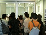 写真左:ガラスの向こう側が選手達のいるトーナメントエリア