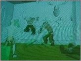●複数キャラクターでのラグドール処理 タックルの例。複雑な形状の人体同士のぶつかりが自然に表現されている。 →ダウンロード (23秒:11MB, MPEG-1)