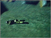 ●ラグドールの例その2 デザイナーが指定した「死にポーズ」へと移行していくラグドール処理。死にポーズをいくつか使い分けないと,かえって不自然な気がするのだが。 →ダウンロード (29秒:14MB, MPEG-1)