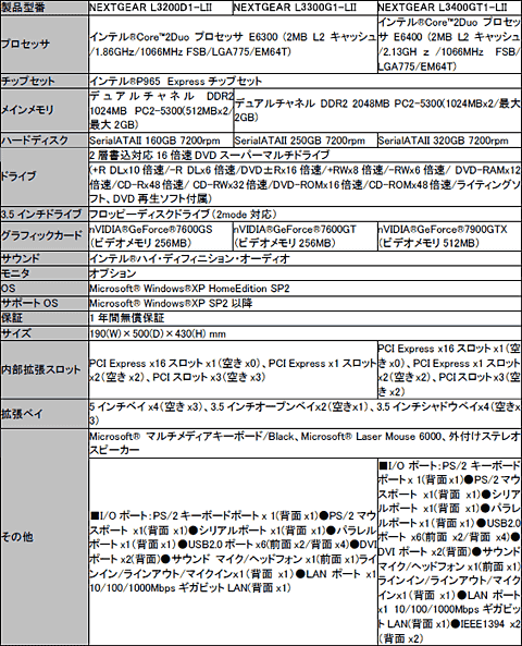 NEXTGEAR L3400GT1-LII/NEXTGEAR L3300G1-LII/NEXTGEAR L3200E1-LIIの製品イメージ ※ディスプレイは別売りです