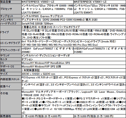 右:MASTERPIECE V700X1-LII/V500E1-LIIの製品イメージ ※ディスプレイは別売りです