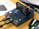 基本的に同製品はMSXマシンの所有者を対象にしており,コントローラなどはついていない(PS2用のキーボードは接続可能)。ただ,ゲームのカセットを挿すスロットのほかにSDメモリカードが使えるので,MSX BASIC(というのがあったんですよ)などで作った自作ゲームを保存することは可能だ。D4エンタープライズでは,SDメモリカード用のMSXソフトのダウンロード販売のほかに,カセットそのものを販売することも考えているが,具体的にはまだ何も決まっていないとのこと。 それにしても,あのMSXと同等の性能がたったの1チップに収まるとは,まさに電子工学の長足の進歩を目の当りにする思い。けれど,その高度な半導体技術を利用して作られたのがなぜかMSXで,ブースで実演されている「グラディウス」に,技術の進歩を見に来たはずの人(大半はちょっと歳が上)が足を止めて見入っているのである。だからゲームショウって面白いや。(松本隆一)