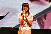 ここまでの説明を終えると,司会者が南さんを呼び込む。南さんは,オスカープロモーション所属の,現在人気急上昇中のグラビアアイドル(ファッションモデルとしての活動も)で,1989年5月15日生まれの17歳。パンチ佐藤がプロ野球選手だったことを知らなかったとしても,それほど不思議ではない年齢だ。そう考えると,TGSおよびハンゲームブースのステージイベントの来場者の多さに,「緊張して手が震え」てしまうのも無理はないだろう。