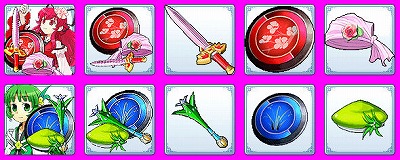 上段:フェイユーコンプリートセット,フェイユースペシャルセット,紅烏梅の剣,万年紅の盾,八重梅の頭巾