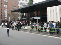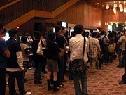 15分間の休憩時に出来た物販の待ち行列(左)と,「ニトロスーパーソニック2006」のコンセプトアートを用いたポスター(右)