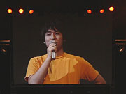 ファンイベントらしく,話題はますますもってクローズドな方向に転じていくのだが,第一部の締めくくりを担ったのは「ジョイまっくすの一日」と題する,ニトロプラス広報の一日の仕事を追ったドキュメンタリー映像と,サプライズ企画の取材映像「タダオ伝説」。前者は,企画会議やインターネットラジオの収録,秋葉原各店舗への販促ポスターのデリバリーなどといった,ジョイまっくす氏の仕事に密着取材した映像で,スクリーンに映されたのはそのダイジェスト版だ。本体は来場者に配られた特典CDに収録されており,これが全42分48秒にわたるという力作である。……またもや,力の入れどころが微妙なわけだが。 さらに微妙なのがタダオ伝説である。そもそもタダオとは,ジョイまっくす氏のご尊父の名なのだが,ジョイまっくす氏はトークイベントやインターネットラジオでしばしば,氏とご尊父の奇妙なやりとり,とくにご尊父のいささか唐突な言動をネタにする。そこを狙って,ジョイまっくす氏に秘密でタダオ氏に取材し,その日常と視聴者へのメッセージ(?)を採録,さらにジョイまっくす氏の芸名の元ネタとして知られる2匹の犬ジョイとまっくす,その飼い主たる氏の叔母君からのメッセージまでを映像化してしまったのだ。 面食らうジョイまっくす氏のリアクションを含めて,会場は笑いの渦と化した。