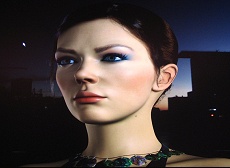 まず,以前のニュースでも紹介していたAdrianne Curryさんのバーチャルモデルのデモから。これは実在のファッションモデルをリアルタイム3DCGで再現しようという試みである。精密に再構成されたモデリングデータとモーションキャプチャデータによって,水着の美女が画面内でウォーキングを見せる。 個人的な感想としては,正面からのライティングがフラットすぎてリアリティが損なわれている気がしないでもないが,とくに顔の部分は非常によく作り込まれている。 日本国内の内覧会で公開されたバージョンが最終版とは限らないのだが,髪型が結い上げた形であったのは,ちょっと意外であった。Nalu以降,(無重力状態限定ではあるものの)長髪の動きのシミュレーションをデモでアピールしていたので,今回は重力下での毛髪シミュレーションを行うと予想していたのだが。 とはいっても,髪の毛ポリゴンにマッピングを施したものではない(今回の内容ならそれでも実現できただろうが)。ワイヤーフレームを見ると,髪の毛は1本1本作られていることが分かる。ただ,ワイヤーフレームを見る限り,全体のポリゴン数はこれまでのデモと比べて,さほど増えてもいないように思われる。やはり,高精度のマッピングとシェーダ処理が今回のデモの主眼なのであろう。 目の下あたりを拡大してみると,非常に細かな皺の流れや毛穴まで見える。一律のテクスチャを貼り付けているのではなく,顔の各部を忠実に再現していることが分かる。テクスチャだけならまだしも,ちゃんと凹凸として再現されている。どうやってあんな細かいデータを取ったのかと感嘆するほどである。高精度レーザー計測だろうか? このレベルでデータを取って,それを忠実に再現してあるのなら本物の写真と見分けがつかなくても当然かもしれない。 昨今は,データさえあれば,ノーマルマッピングでリアルな造形を実現できる。これはさほど驚くには当たらない。ここまで細かくデータを取ったということが驚きである。 リアルな肌の表現で欠かせない表面下散乱などは,Naluなどの以前のデモでも手をつけられていた部分であるが,より作り込まれたものになっている。 ただ,バーチャルファッションショウなら,髪型や衣装を変えてもっと変化のあるデモにしてほしかったところだ。