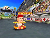これまでのシングルモード(1人用)は、アイテム戦モード(アイテムを使 用して戦うレーシング)でしたが、今回の「タイムレコード」実装を機に スピード戦(スピードを競うレーシング)へと変更され、以下の4つの マップで走行できる様になります。記録に残されたベストタイムは、 『カモンベイビー!』公式サイト(http://www.comeonbaby.jp/)と連携し てWEB上に表示される予定です。成績優秀者やキリ番(例として100番や777 番など)になったユーザーには表彰などを予定しています。