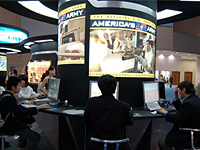 本作は,最初にリリースされた2002年から丸4年以上経つ息の長いタイトルで,バージョンアップを重ねて現在はVersion 2.7が最新となっている。なお,America's Armyの開発経緯に興味を持った人は,連載記事「奥谷海人のAccess Accepted」第27回,第42回が参考になるはずだ。 ちなみに,Version 1.xは「America's Army: Operations」,Version 2.0〜2.6はAmerica's Army: Special Forces」,そして2006年11月時点で最新となるVersion 2.7は,「America's Army: Special Forces(Overmatch)」と,それぞれサブタイトルが付けられている。 さて,そんなAmerica's Armyが,なぜG★2006の会場で展示されているのだろうか。しかも展示されていたU2 Mediaブースは,America's Armyのみの出展にもかかわらず,会場入り口すぐそばに10小間ほどのスペースを確保しているという力の入れ具合だ。どうにも気になってしかたなかったので,ブースにいたスタッフに話を聞いてみた。