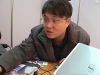 ブースではムービー出展に留まったMMORPG「Kailas」だが,せっかくのゲームショウである。開発者に話を聞くことで,ゲーム内容をもう少し詳しくお届けしたい。といったわけで,WeMade EntertainmentでKailasのディレクターを務めるキム・ウォンテ(金元泰)氏と,プロジェクトマネージャーのパク・ヨンホ(朴永浩)氏に,この作品の特徴と設定を聞いてみた。