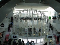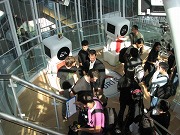 吹き抜けの2階構造をしたEA Experience。2階奥,窓際と左右のテラスに試遊台が並んでいる。向かって右が「The Sims: Pets」,左が「Need for Speed: Carbon」のコーナーになっていた