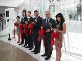 (写真上段左)香港有数の観光地であるヴィクトリアピークの山頂にあるのがピークタワーだ。ちょっと妙な格好をしているので,見逃すことはない。上階にはレストランやショップが入っている (写真下段)現地時間11月10に行われたオープニングセレモニーの様子