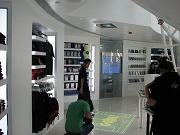 (写真左)中央の丸い玉の中にはXbox 360を使った「FIFA 07」の試遊台が二つ並んでいたが,ちょっと寂しい雰囲気も。試遊台などは今後,どんどん増えていく予定だ (写真右)1階部分には物販コーナーがある。Electronic Artsのゲームが欲しいときは迷わず香港に行こう。……いや,本気にしないでください