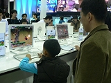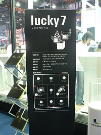 フロアプランの段階で,事はかなり明らかだったのだが,今回のG★で主役を張ったといえるパブリッシャはNexonだろう。面積にしておそらく最大,会場の中央にほぼ正方形のブースを配した様子は,それだけでもかなりの存在感を誇っていた。そこへ来て,出展タイトル数もブースのデザインも,いささか大げさに表現すれば出色とさえいえる。 出展作品は,プレイアブルだけで11本。これにステージ発表やムービー出展のみに留まる4本が加わることを考えれば,確実に出展メーカー中最多のタイトル数だ。試遊台の数も,「マビノギ」「メイプルストーリー」「Kart Rider」といった定番筋と,「Koong Pa」「ナナイモ」といった対象の広いカジュアル系のうち新作では,だいたい7〜8台,「九龍争覇」や「ルニア戦記」「WarRock」を含むそのほかのタイトルは,3〜4台ずつ用意されていた。 週末に入って,小中学生や親子連れの来場者も増え,とくにKart RiderやKoong Pa,そしてメイプルストーリーの試遊台列には,子供の姿が目立つ。対してマビノギやルニア戦記では,女性ないしカップルがプレイしていることも多かった。