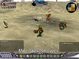 このムービーは,Laconの各種要素をそれぞれ見せてくれるデモとなっている。テロップが出てくるので分かりやすいが,用語の一部を解説しておこう。“Dual Mode”は人間のアバターとロボットの両方の形態があること,“Multi Attack”は攻撃の種類を表す単語だ。銃は近接,ミサイルは遠距離,ビームは広範囲の攻撃を行う。“Monster Shower”では,文字どおり多くのモンスターが襲ってくる。 ほかにもロボットパーツの交換や,武器のアップグレード,通常の狩り,種族間戦争などの様子が収録されている。
