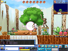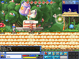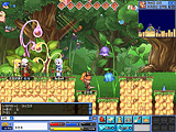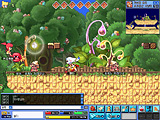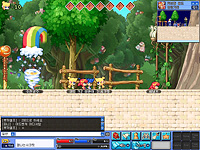 さて,ゲームの内容だが,これはアクションアーケードオンラインゲームというジャンルだそうで,解説中に何度も「メイプルストーリー」という名称が出てきたので,似た感じのゲームだと思えばいいだろう。 ステージは,通常の狩りを行うマップと競争用のマップに分かれており,駆けっこのような障害物競走を行うこともできる。また,一定時間内に隠された7種類のアイテムを探すとステージクリアとなる「レインボーシステム」も搭載されている。この「探す」ということを,ゲームの方向性として出すように開発は進められているようである。