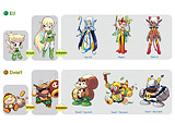 キャラクターは,ヒューマン,エルフ,オーク,ドワーフ,ピクシーの5種類があり,バディというアイテムを集めると,「変身」ができるようになる。変身するとどうなるかは絵を見ていただいたほうが分かりやすいだろう。変身すると2頭身だったものが3,4頭身になる。さらに職業選択でキャラを変えていくこともできる。 面白いのは,ヒューマンでプレイしていても,エルフのバディを拾うとエルフの成長体型に変身できることである。種族にはあまりこだわってないようだ。 キャラクターのレベル以外に,ゲーム内での「何年生」かが決まるようになっており,1年生から始めて10年生まで,通常のレベルとは別に成長していくという。