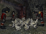 町の象徴である巨大なドワーフ像は,隕石の衝突によって壊れてしまっている。町の前にはコボルドが陣取っており,このゾーンもまたプレイヤーにとってはダンジョンになっているようだ。 中に入って歩き回ってみると,今この町で暮らしているのはコボルド,ゴブリンといった邪悪なデミヒューマン系種族らしい。町の構造は500年前からあまり変わっていないようで,神殿やアリーナはほぼ記憶通りの場所にあった。 さらに奥まで足を踏み入れ,最も重要そうな場所までいくと,そこに陣取っていたのはラトンガ達だった。そういえば彼らも,ドワーフと同じくBrell Serilisによって作られた種族だ。何か因縁があってこの町にいるのかもしれない。