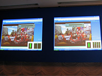 左:1080iの高解像度ムービーを再生しながら,バックエンドでやはり1080iのムービーを編集するデモで,CPU以外が同じ構成のPCを用いて,X6800(左)よりもQX6700(右)のほうが速いとアピール。「このような用途は,デジタルホームでは起こりえる」(阿部氏)とのことで,やはりクアッドコアCPUは当面,ホームサーバー的に用いられるのを想定しているようだ