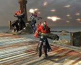 Huxleyでは数百の武器/防具が存在するが,戦闘マップに持ち込めるのはそのうちの一部だけとなる。そのため,シティで特定のNPCと会話することで,戦闘マップで使う武器を決める(RPGでいうところの装備にあたる)ことになる。 また,HuxleyではMMORPGのようなクエストが存在するが,これもシティでNPCから受けることになる。姜氏によれば,クエストには「レーダー基地を占領する」などの目的があり,達成すると経験値やアイテムがもらえるとのことだ。 ちなみに,このレクチャーでは現在開発中のXbox 360版と同時接続するデモも見せてもらった。残念ながら開発中とのことで画面は掲載できないのだが,会場で見た限り,視認レベルではタイムラグもなく,ハードの垣根を越えた対戦もスムースに実現できそうだった。