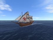 ・スパニッシュガレオン(リリースより) 非常に強力な戦闘力と堅牢さを兼ね備えた大型帆船。敵船への乗り込み攻撃を有利にするためにそびえ立った船首と船尾が特徴で、イスパニア無敵艦隊の主力となりました。