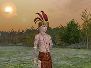 ・ダヤク戦士のテラ(リリースより) 「ダヤク」とは、カリマンタン島(ボルネオ島)に住む先住民族のこと。この衣装はダヤクの戦士が着用するもので、帽子と腰巻が独特の模様で染められています。また、その模様に合わせるかのように身体に施された刺青は戦士としての勇敢さを強調しています。