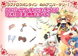 ガンホー・オンライン・エンターテイメントは,「ラグナロクオンライン」がサービス開始4周年を迎えることを記念して,ガンホーオンラインショップで「アニバーサリーチャンスくじ」を明日(2006年12月1日)から発売する。