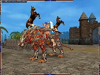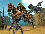 GMツトム氏: はい。傭兵システムというものを開発中です。すでに実装されているマウント(乗り物)の効果は,防御力アップが基本なんですが,傭兵を連れていれば,攻撃力アップの効果が得られます。まだ実際に動いているものは見ていないのですが,マウントに乗ったプレイヤーキャラクターの横に,人型のNPCが付き従う形になりそうです。