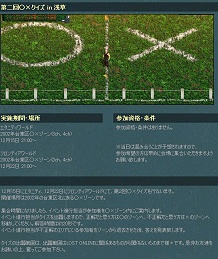 ■第二回○×クイズ in あさくさ 開催日時 : エタニティサーバー 12月15日(金) 21:00 〜 フロンティアサーバー 12月22日(金) 21:00 〜 会場 : 各サーバー 2002年 台東区○×ゾーン (3ch、4ch) 参加資格・条件 : なし