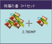 【実施内容】 期間中、「属性変更書」・「属性付与書」・「祝福の書」のいずれかの呪文書3 つのセットに、なんと!もう一つおまけで同じ呪文書が付いてくる! こんなにお得なチャンス、皆様お見逃しなく!!