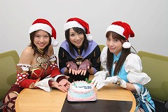 クリスマスなんかどうでもいい。早く過ぎ去れ。年末年始の休暇になったら,たっぷり寝るんだ。パトラッシュ,もう疲れたよ……。こんな具合にやさぐれた人々の思念が溢れかえる(と僕は思っている)編集部に,リネージュガールの市川円香さん(リネージュ プリンセス),森 飛鳥さん(リネージュII ヒューマン),NC JAPANパーソナリティの小川瀬里奈さんが,クリスマスケーキを持って慰問(?)にやってきてくれた。これはもう,秋山成勲と同じぐらいのテンションで,「クリスマス,サイコー!」と叫ばざるを得ない。