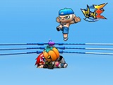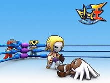 本作は,3頭身のコミカルで可愛らしいSDキャラクターを操作し,プロレス特有の技の数々を繰り出して相手を倒すというもの。 技の種類は300以上と豊富だが,基本操作に使用するのはカーソルキーとZ(反則技),X(パンチやつかみ技),C(蹴り技)のみと,いたってシンプルだ。