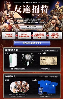 上記期間、まだ『英雄オンライン』をプレイされていない方を招待されたユーザーの方に、様々な賞品が当たる「友達招待キャンペーン」を開催いたします。