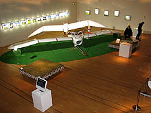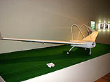 ちなみにメーヴェメーヴェと呼んではいるが,風の谷のナウシカを制作したスタジオジブリに正式な許諾を取っているわけではなく,あくまで通称だそうだ。正確にはMー02という名前なのだが,じゃあ,Mは何の略かというと,やっぱりメーヴェらしい。 しかし,展示されていたMー02の翼端長は約4.5mもあり,かなりでかい。ナウシカはメーヴェを持ち上げて走り,勢いをつけて飛び乗っていたが,それはちょっと無理であろう。